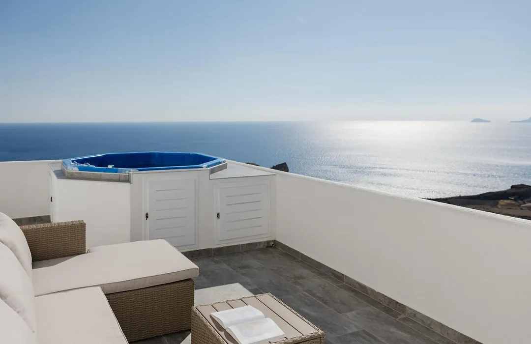 Situata a 4 km dal Porto di Santorini, la Occhio-Nero Cycladic Private Villa With Pool & Sunset View Jacuzzi Akrotírion offre una terrazza con vista sul mare. Dotata di noleggio auto e biciclette, questa villa invita gli ospiti a visitare l'Antica Akrotiri, situata a circa 25 minuti a piedi.